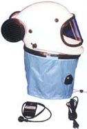 Pressurized Tyvec suit, attaches directly to helmet.